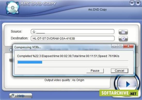 Arc DVD Copy is able to: Copy a DVD Movie In 20-40 Minutes! Shrink a dual-layer (D9) movie onto one D5 with all the Special Features,Menus, Subtitles & Languages. 1:1 D9 to D9 and D5 to D5 copy without distortion. Copy main movie only,remove unwanted Subtitles/Audios to increase quality. Split DVD-9 into two blanks with all the Special Features,Menus, Subtitles & Languages. Copy DVD to hard drive and burn DVD disc from hard drive. Copy episode DVDs(TV shows on DVD). Remove region protection(Region-free) and Macrovision Protection. Copy CSS(Content Scrambling System) protected DVD movies. Copy SONY ARccOS protected DVD movies.